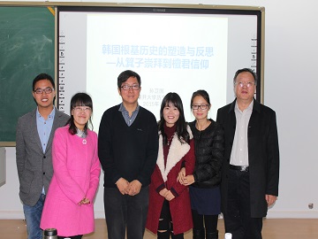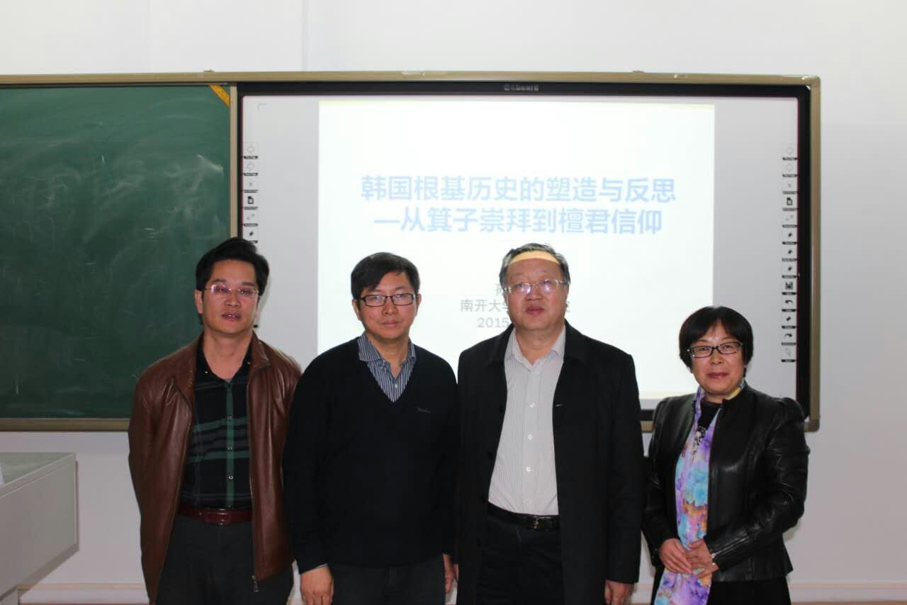 2015年10月30日下午,“亚洲共同体及东亚国际史系列讲座”邀请了南开大学博士生导师孙卫国教授,为世界杯官网师生做了“韩国根基历史的所在与反思——从箕子崇拜到檀君信仰”的专题讲座。孙老师从“根基历史”释义开始,介绍了中国古代箕子其人,箕子东去朝鲜,朝鲜的箕子崇拜与朝鲜历史的建构,以及箕子认同消亡与檀君信仰勃兴等几个问题,孙老师的讲座客观地再现了韩国历史上的民族信仰以及变迁,揭示了“现实需求、当下意识与民族认同”是其信仰选择的依据。讲座开拓了师生学术视野,启发了学生思考,最后进行了有效的师生互动。