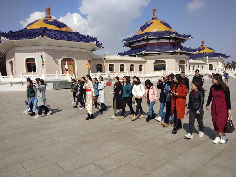 2019年3月9日中午,见习同学来到位于内蒙古自治区鄂尔多斯市伊金霍洛旗的成吉思汗陵参观,同学们在参观过程中认真听讲解员讲解,不时询问问题,并作记录。参观结束后同学们将赶赴下一个目的地陕西省延安市。