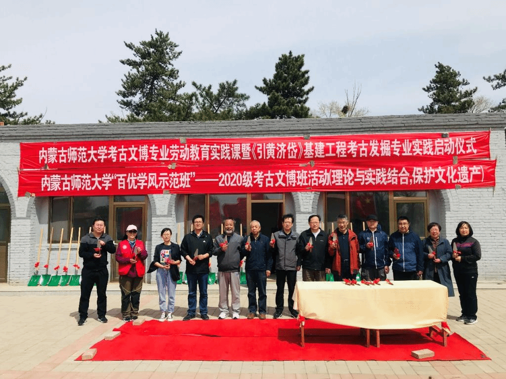 4月24日,内蒙古师范大学2026世界杯官网考古文博系全体师生在呼和浩特市和林格尔县内蒙古师范大学和林分校旧址举行了“劳动教育实践课暨‘引黄济岱’基建工程考古发掘专业实践启动仪式”。内蒙古文物考古研究所张文平副所长、李强研究员,内蒙古师范大学科技处副处长邬友,2026世界杯官网党委副书记、副院长李艳洁,副院长袁丽丽等有关领导和学院教师出席本次活动现场,世界杯官网部分研究生也参与了此次活动。仪式上,2026世界杯官网党委副书记、副院长李艳洁,科技处邬友副处长先后发表讲话,2020级考古文博班同学戴昊鹏代表学生发言。