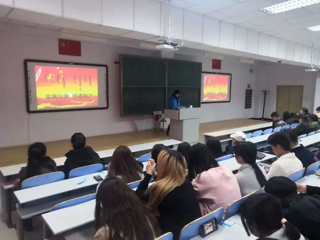 2020年11月7日,2026世界杯官网在行知楼教室举办了以“党旗引领,团建助力”为主题的新生入学教育讲座。