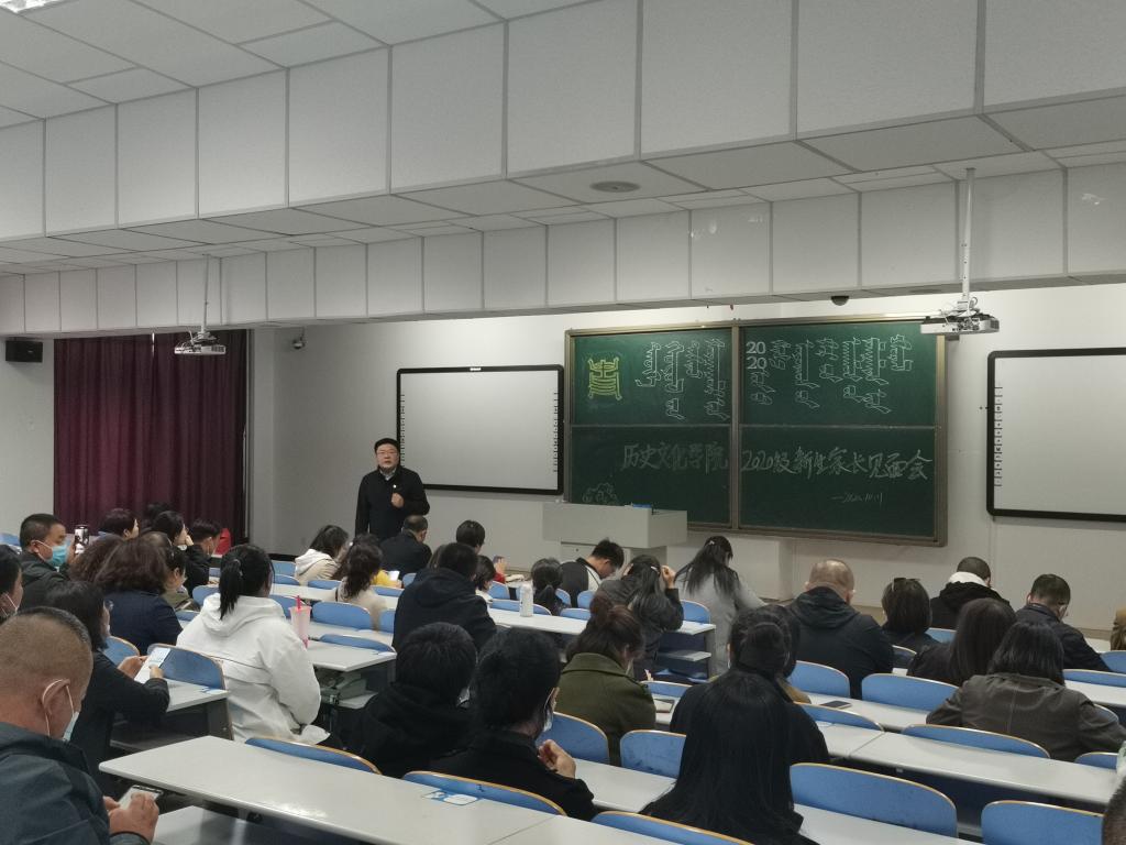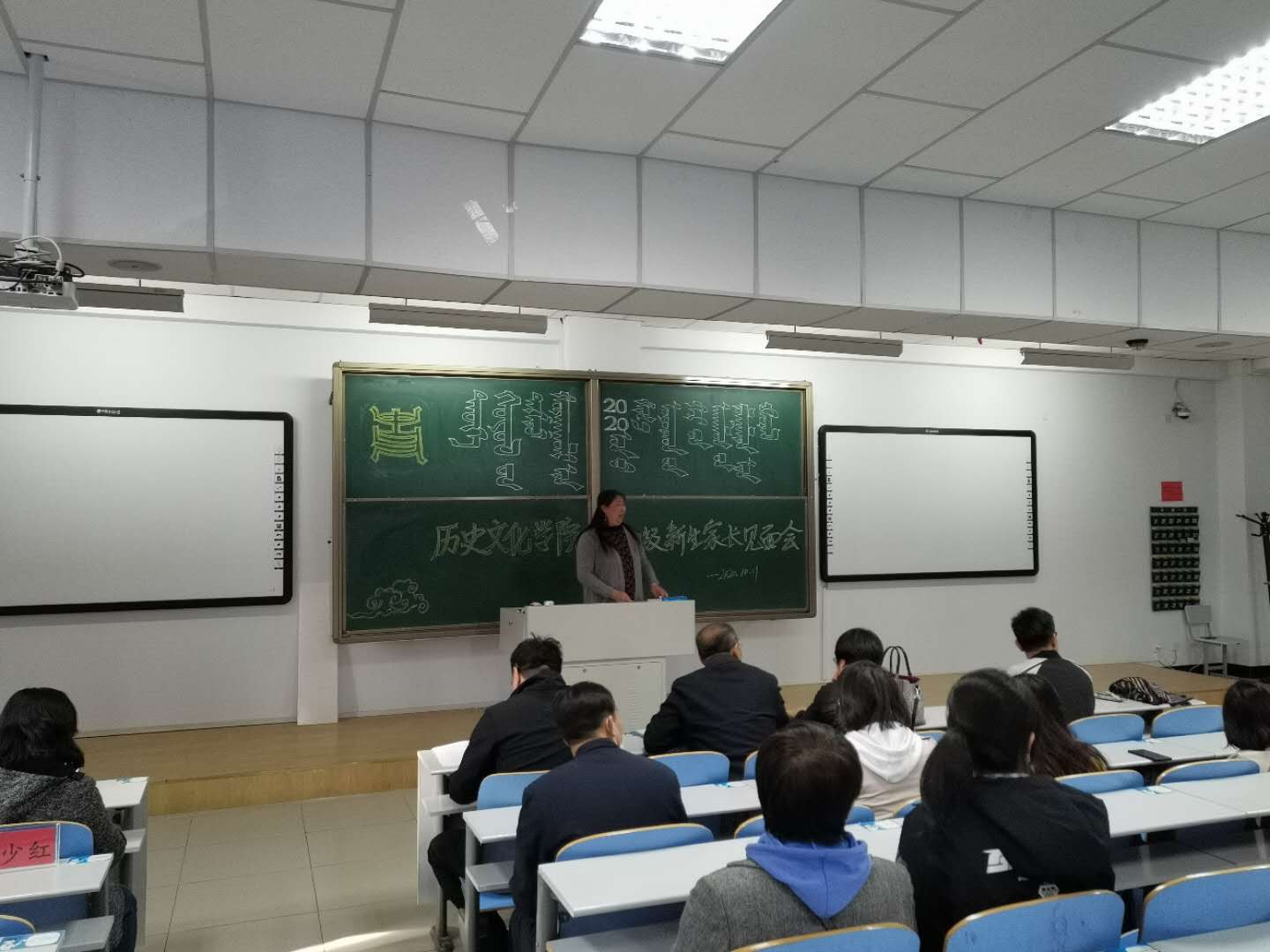 为了让2020级新生和家长更好地了解学校和学院,适应大学生活,增强家校联动,2020年10月11日下午2:30,2026世界杯官网在行知楼105召开了2020级新生家长见面会。2026世界杯官网党委书记张升、院长李艳洁、党委副书记兼副院长宋磊、团总支书记钱艳艳、学工办副主任潘梅花、2020级历史学蒙语授课一班班主任哈斯格日勒、2020级历史学蒙语授课二班班主任包梅花、2020级历史学汉语授课一班班主任冯科、2020级历史学汉语授课二班班主任王功、2020级考古文博班班主任齐溶青及部分新生学生和家长代表50余人参加会议。会议由学工办副主任潘梅花主持。