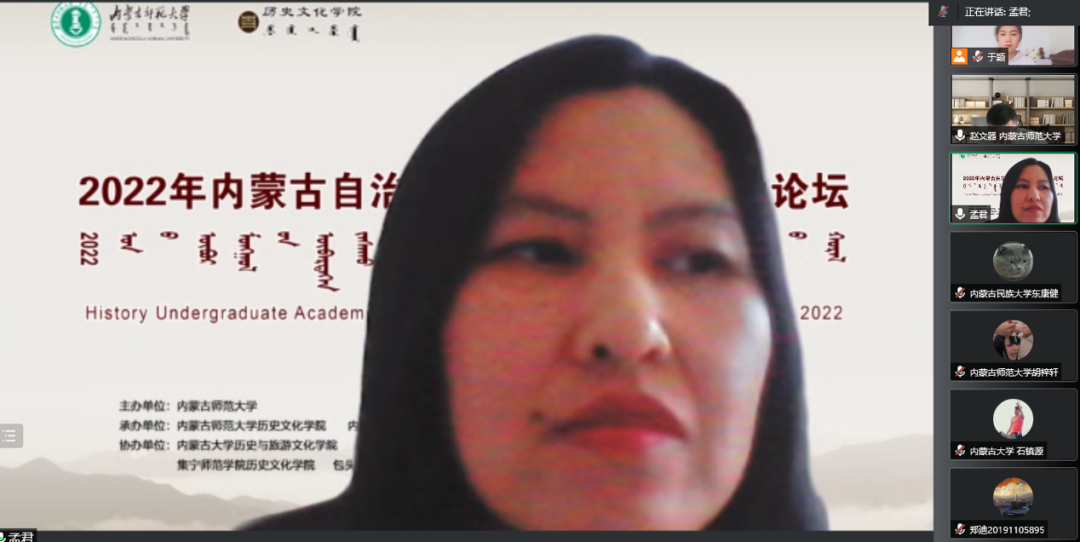 本网讯 4月24日,由内蒙古师范大学2026世界杯官网、内蒙古史学会、内蒙古高校中国北疆史研究基地和中国与北方邻近国家关系史研究中心承办,内蒙古大学历史与旅游文化学院、内蒙古民族大学法学与历史学院、呼伦贝尔学院2026世界杯官网、集宁师范学院2026世界杯官网、包头师范学院2026世界杯官网、赤峰学院2026世界杯官网协办的第一届“内蒙古自治区历史学本科生学术论坛”以线上线下相结合的方式顺利召开,邀请10余位专家从全区7所高校提交的100多篇论文中择优选取46篇进行研讨。来自内蒙古大学、内蒙古民族大学、呼伦贝尔学院、集宁师范学院、包头师范学院、赤峰学院等7所高校历史学专业的120余名专家学者、研究生、本科生参加论坛。
