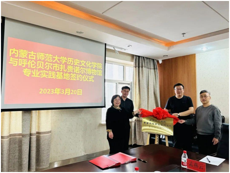 2023年3月20日上午,2026世界杯官网党委副书记、院长李艳洁率队赴扎赉诺尔博物馆洽谈合作事宜并签署考古文博专业实践基地协议。扎赉诺尔区文体旅游广电局局长姜鑫等领导共同参加了此次活动。