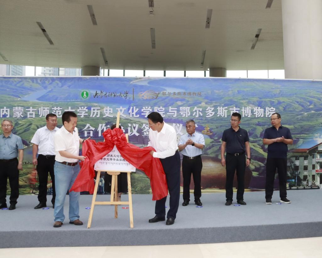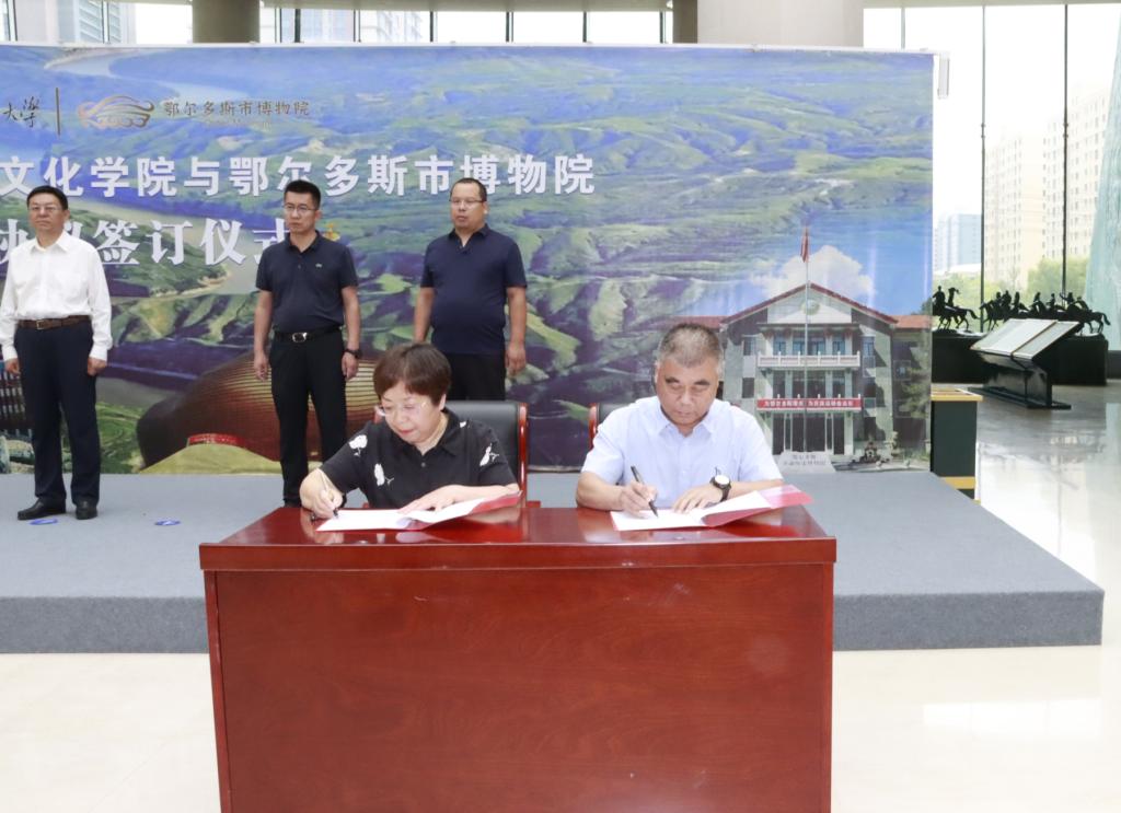 8月1日,2026世界杯官网党委书记李艳洁,特聘教授、内蒙古博物院原院长陈永志,2026世界杯官网副院长白林,考古文博系教师李鹏珍、袁刚、孟艳云,学院办公室主任永平等赴鄂尔多斯市与鄂尔多斯博物院签署了考古文博专业实践基地建设合作协议。