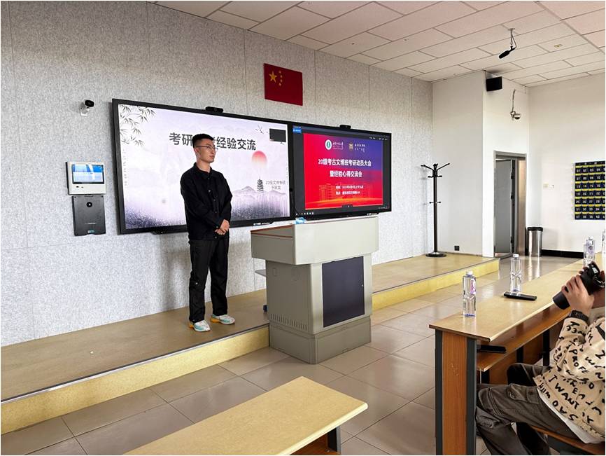 接着,由优秀学生代表分享考研经验。刘伟学长从自身经历出发,分别就复习心理、资料寻找、学习策略等方面向同学们传授经验,并希望同学们在备考过程中做好心理建设,以较为轻松的心态面对考研。黄凤仪学姐以线上的形式从学校选择、复习计划、时间安排等方面为切入点,向同学们详细讲解了如何充分备战考研,以及如何找到适合自己的学习方式。赵耀超学长从择校与专业、公共课复习、专业课复习等方面,向同学们提出备考建议,认为保障充足的睡眠与愉悦的心情是十分重要的。于跃龙学长从院校、专业课复习、考场答题等方面进行经验分享,希望同学们能够全面复习,切记抱侥幸心理。