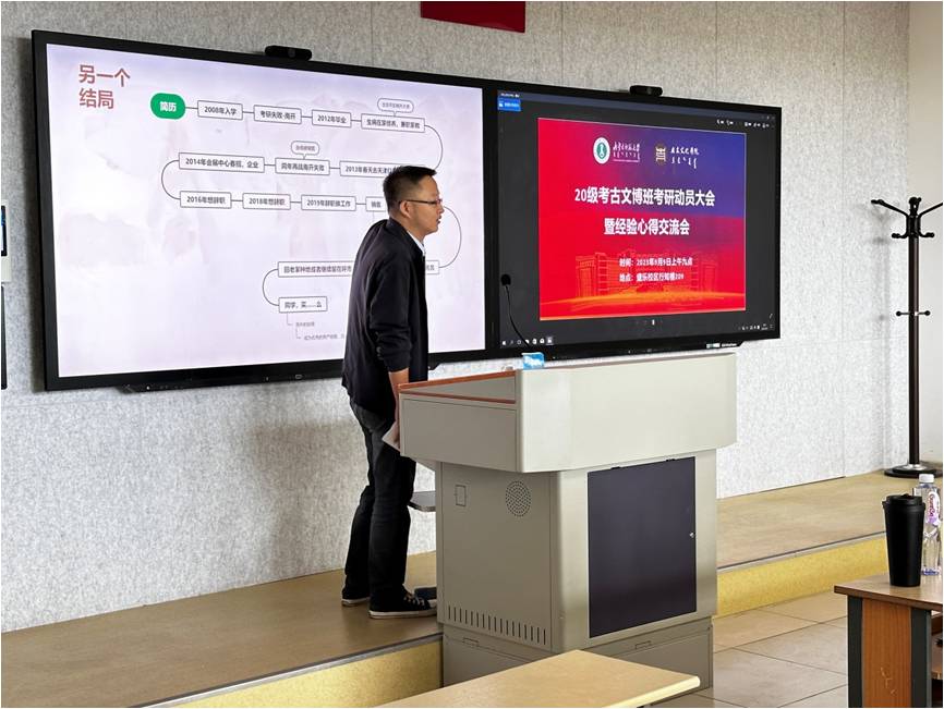为进一步帮助世界杯官网20级考古文博班同学解析考研形势、提高考研积极性、吸收往届上岸学长学姐经验,助力学生更好地进行考研复习规划,2023年9月9日上午,世界杯官网在行知楼209教室召开2024届考古文博系毕业生考研动员大会。学院副书记、副院长檀晶老师、学生就业指导处王建国老师以及2020级和2022级考古文博班全体同学参加会议。会议由考古文博系系主任李鹏珍老师主持。