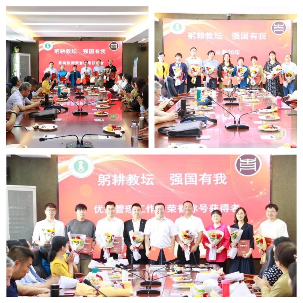 座谈会上,对“最美教师”、“从教20年教师”、“优秀管理工作者”进行了表彰。“最美教师”代表李晓明,“从教20年教师”代表潘梅花、秦奋,“优秀管理工作者”代表乌力吉通拉嘎结合自身经历、收获、体会进行交流分享。