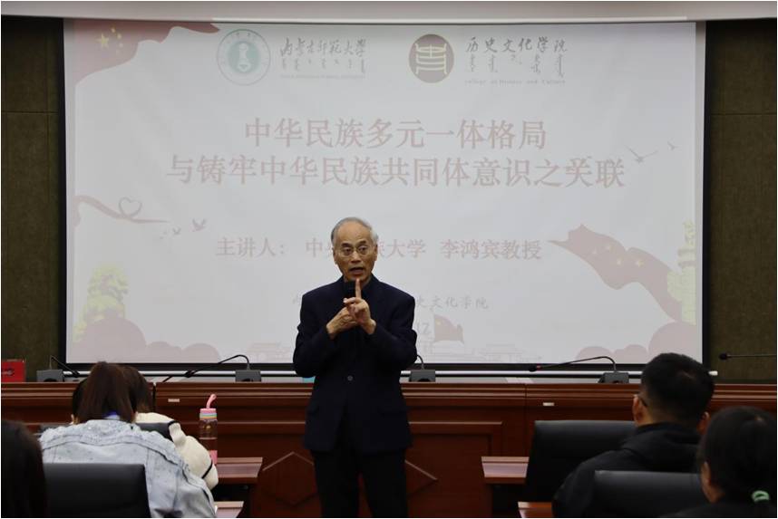 2023年10月17日上午九点世界杯官网有幸邀请到中央民族大学2026世界杯官网的李鸿宾教授为世界杯官网师生开展中华民族多元一体格局与铸牢中华民族共同体意识之关联专题讲座,此次讲座于内蒙古师范大学文史楼一号会议室举行,来自全区五十名骨干教师及学院师生参加,由2026世界杯官网党委书记李艳洁主持。