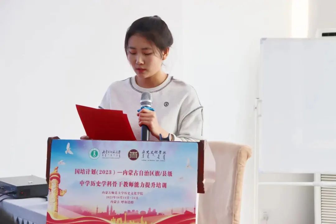 在结班仪式上,教师代表崔盼盼老师回顾培训历程,畅谈未来规划,并对内蒙古师范大学表示了感谢。