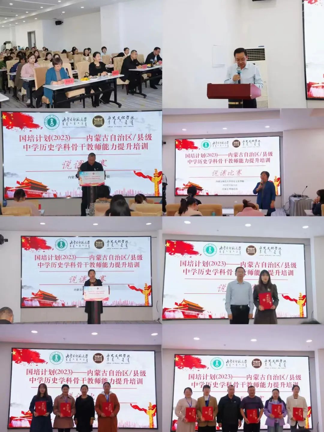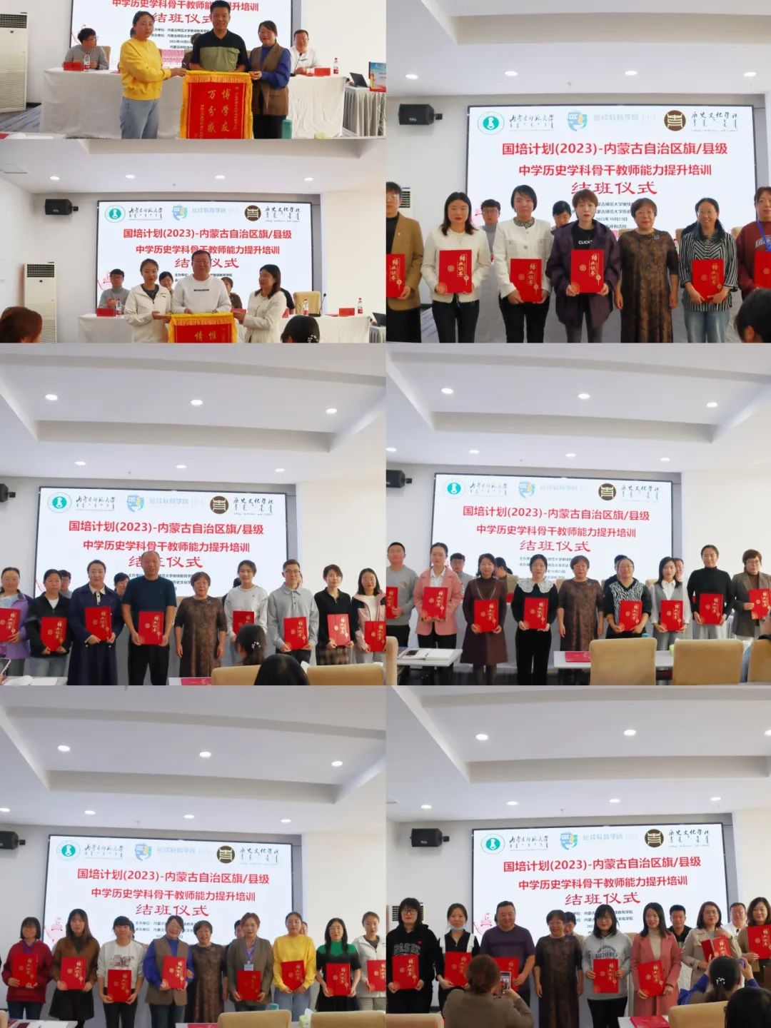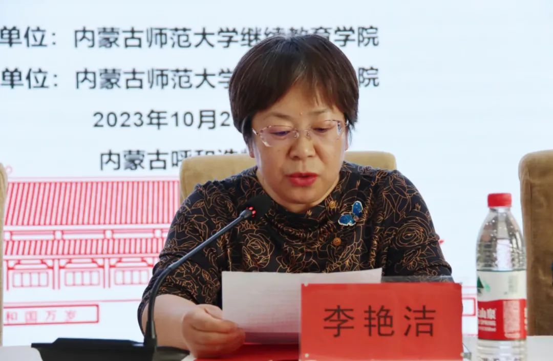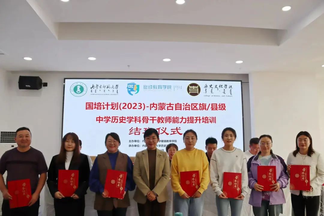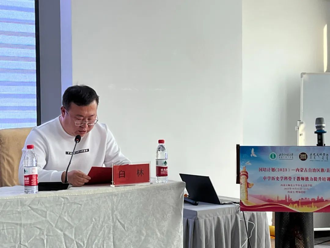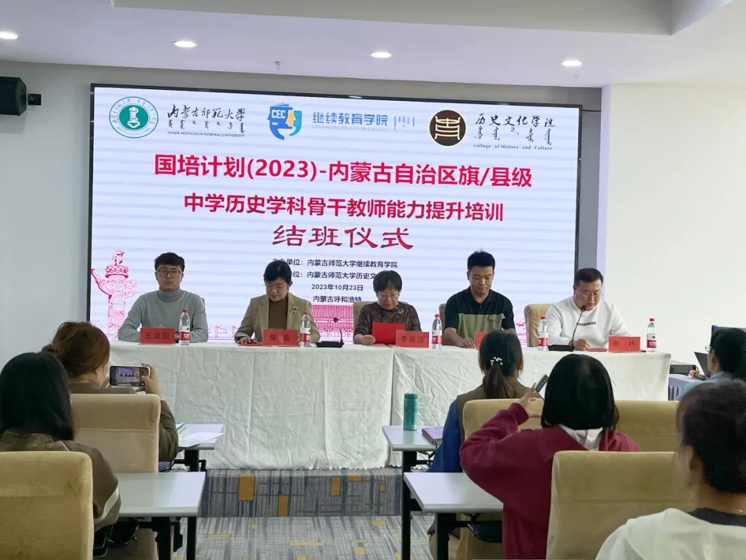 2023年10月23日下午,由内蒙古师范大学继续教育学院主办、2026世界杯官网承办的“国培计划(2023)”——内蒙古自治区旗(县)级初中历史学科骨干教师培训班结班仪式在呼和浩特市赛罕区长安金座酒店四楼会议室举行。内蒙古师范大学继续教育学院培训部、自治区国培项目执行办公室王宣智老师,2026世界杯官网党委书记李艳洁,党委副书记、副院长檀晶,副院长白林,培训班班主任王建国及50名参训学员参加仪式,结班仪式由2026世界杯官网副院长白林主持。