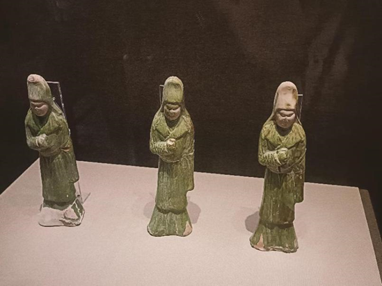 我们先参观了乾陵文物精品展,展品丰富且具有特色。展览将乾陵出土的珍贵文物,按照不同的质地分为唐三彩、彩绘陶、金银杂器、石椁线刻画、壁画等5个单元,除了石椁和壁画为复制品以外,其他的展品均为乾陵陪葬墓中出土的文物。这里展出的110件(组)文物,以永泰公主墓和章怀太子墓为主,珍品荟萃,异彩纷呈。不但具有很高的历史价值、科学价值和艺术价值,还从不同的角度向公众展现乾陵文化的博大精深,展示盛唐文化的精彩与辉煌。