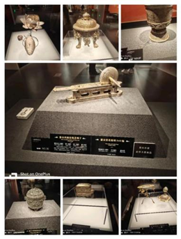 在法门寺内,我看到了许多珍贵的文物,这些文物见证了中国佛教文化的发展和演变。其中最引人注目的是释迦牟尼佛的舍利子。舍利子是佛教中的圣物,相传是佛陀的遗骨或遗物。除了舍利子,法门寺内还有许多其他珍贵的文物,如佛像、经书、壁画等。但除此之外,还有一个令我印象深刻的就是在法门寺陈列的金银器物,法门寺地宫中珍藏的金银器多达120多件(组),具有很高的考古价值。这些金银器多是为皇帝迎送佛骨的活动而专门制造的礼器,做工极为考究,多刻有錾铭,为判断物主、断代提供了方便。其中还出土了许多的茶具,比如茶碾、茶碗等等,与于今日本茶道的器具几乎完全相同,证明了日本茶道来源于中国唐代。
