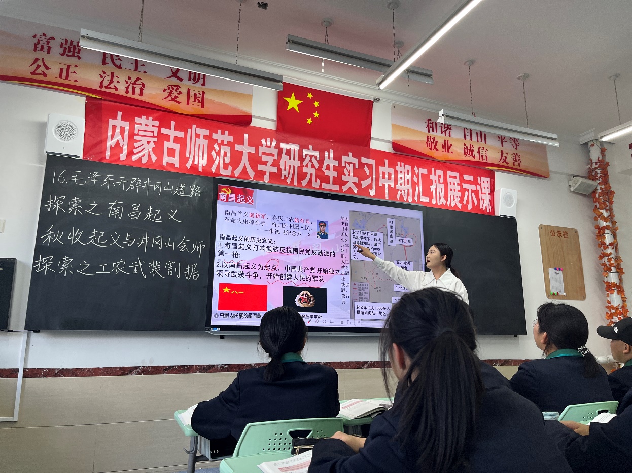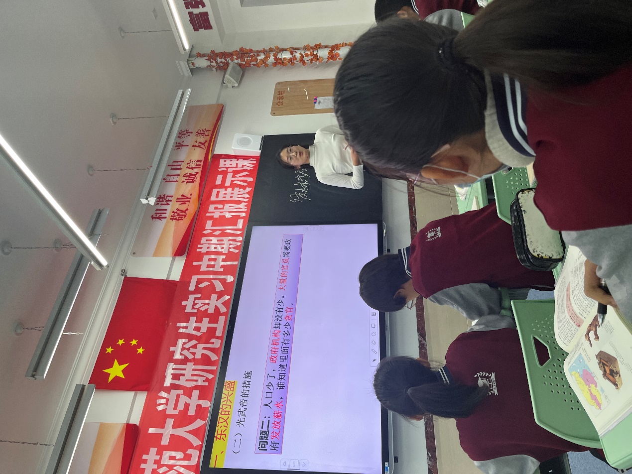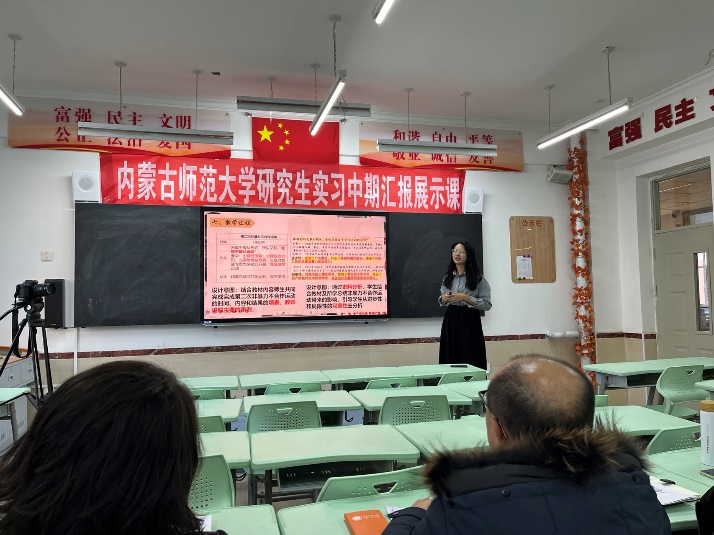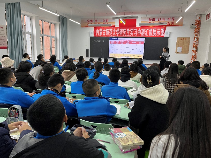 为了提高课堂教学的有效性,促推教师的专业成长,达到“以教促研,以研促教,教研相长”的目的。2023年11月15—16日,内蒙古师范大学2026世界杯官网联合呼和浩特市实验中学(鼓楼校区)历史组开展了研究生中期汇报展示课活动。内蒙古师范大学2026世界杯官网党委书记李艳洁、副书记檀晶、郭永胜教授、王洁、苏日古嘎、袁丽丽、于志勇,实验中学校长黄咏梅、副校长苗琪俊及副校长齐涛等老师出席了本次活动。