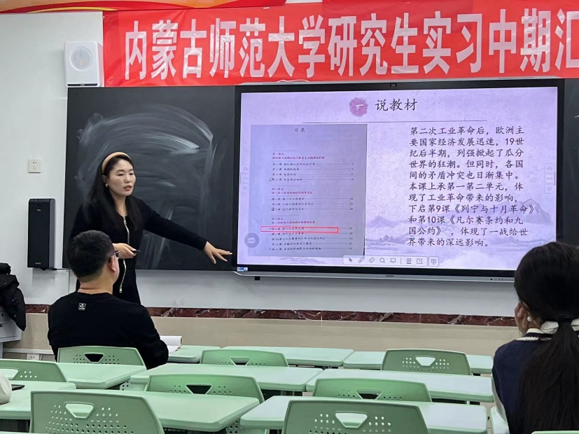 课后,夏祁雨浓同学进行说课展示,在说课环节后,呼和浩特实验中学的老师、内蒙古师范大学2026世界杯官网的老师、共同实习的研究生以及2026世界杯官网23届学科教学(历史)的学弟学妹们,针对本节课开始进行评课环节。