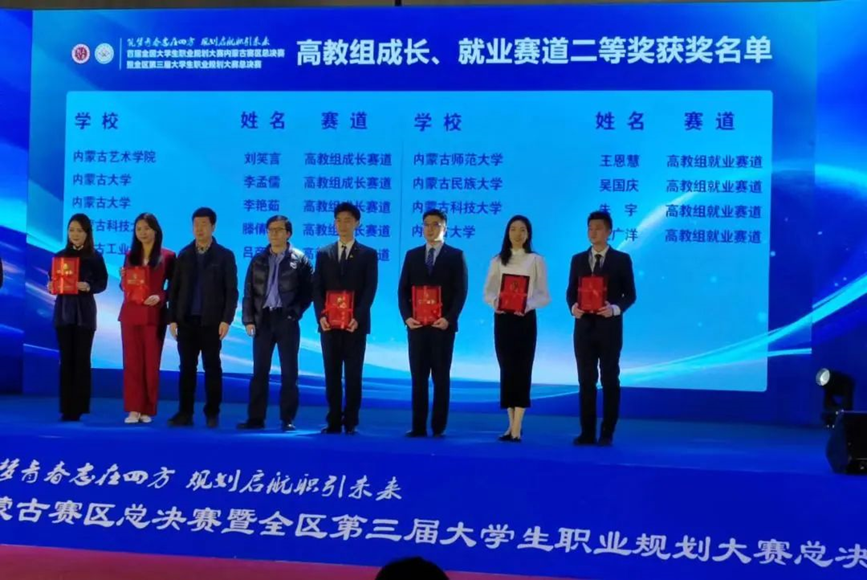 2023年12月10日,首届全国大学生职业规划大赛内蒙古赛区总决赛暨全区第三届大学生职业规划大赛在内蒙古农业大学落下帷幕。经过激烈角逐,世界杯官网2023级学科教学(历史)专业王恩慧同学荣获就业赛道高教组二等奖,指导教师檀晶、王建国获优秀指导教师奖。