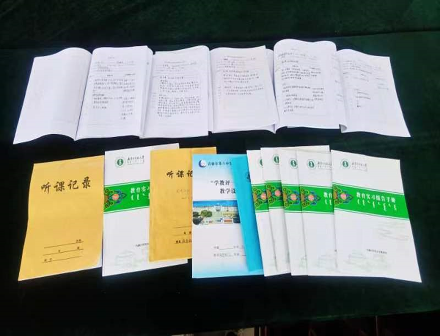 在这几天的走访中,王海凤老师和苏日古嘎老师与实习生进行了座谈,详细了解了他们的日常教学活动、面临的主要问题以及取得的教学成就。此外,调研团队还深入检查了实习生的听课记录本、教案和教育实习报告册等重要文档,确保教学活动的规范性和效果。