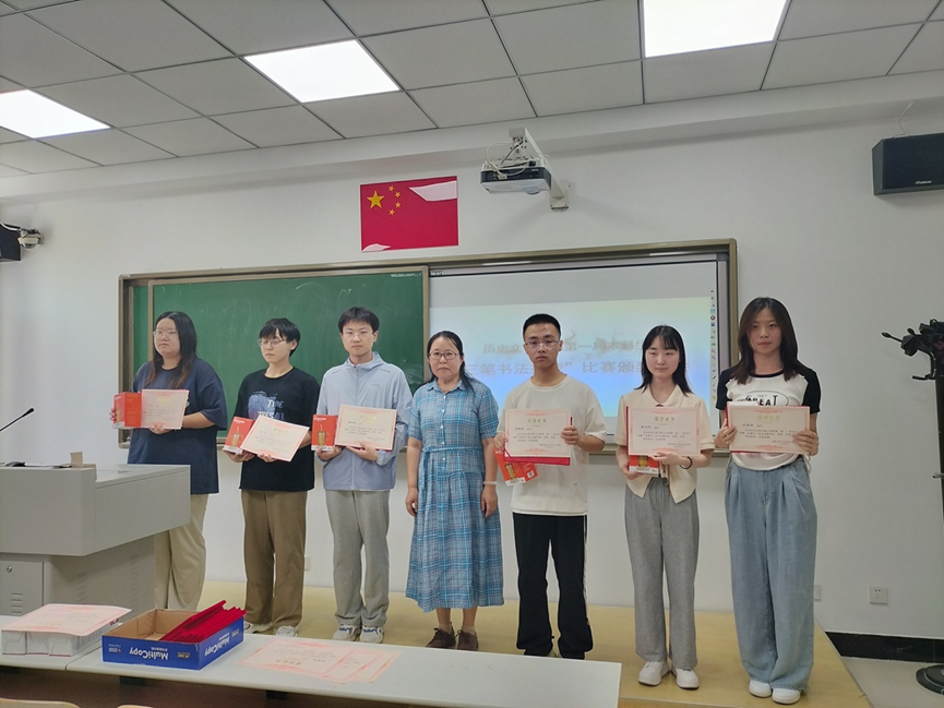 复赛于4月25日举行,内容涵盖硬笔书法、软笔书法及速写三项。经过激烈角逐,最终田梦瑶、熊世猛、王鸿雁、杨晓乾、张紫慧、王思琦等24名同学分别荣获一等奖、二等奖和三等奖。