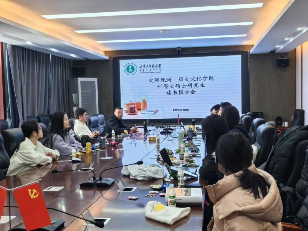 2024年12月27日下午,世界杯官网24级世界史研究生齐聚学院楼B502会议室,进行了“史海观澜”读书汇报会。同学们纷纷上台推荐了世界史书籍,并深入阐述书中精髓。整个读书会的气氛热烈而融洽。同学们共同分享阅读世界史书籍的感悟与思考,在知识的海洋中畅游,感受历史的波澜壮阔。
