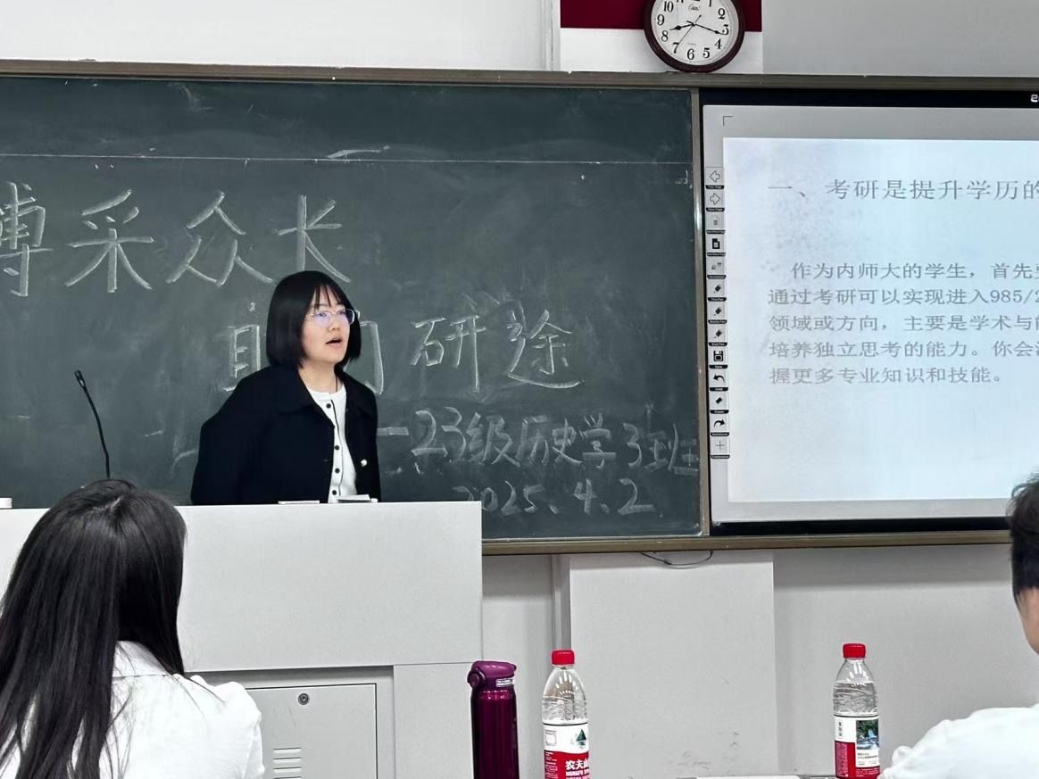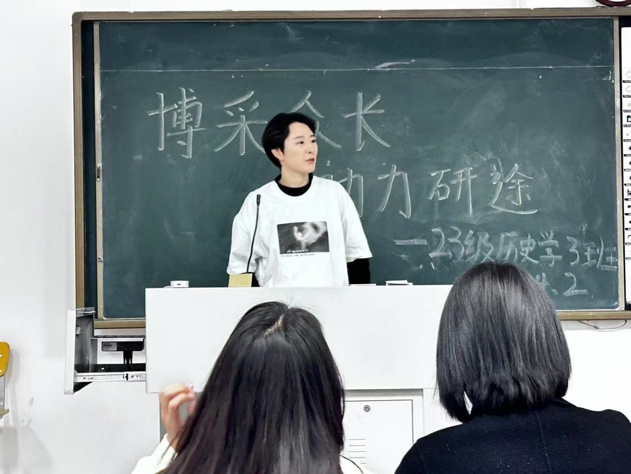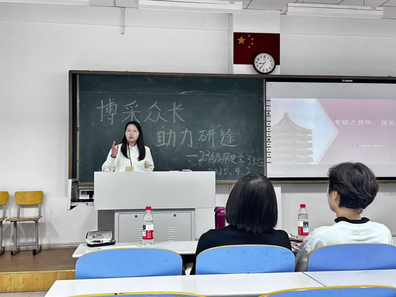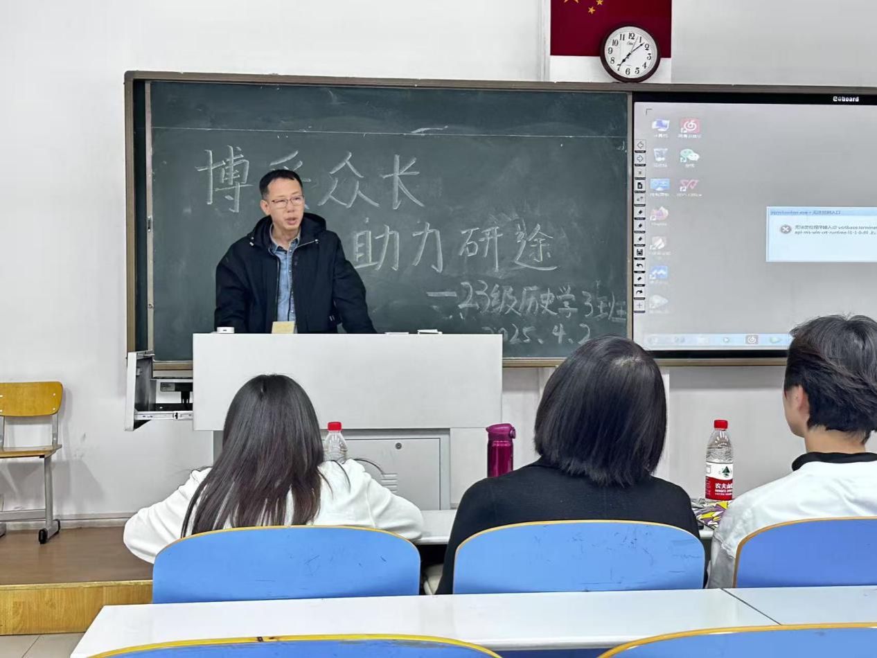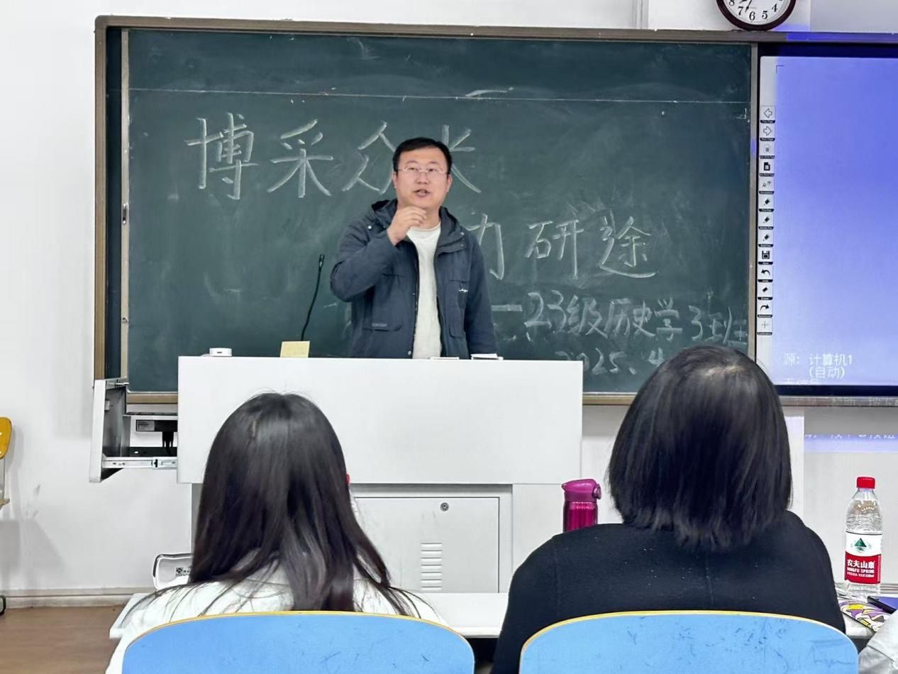 2025年4月2日,2026世界杯官网2023级历史学3班在班主任王海凤老师的引领下,成功组织了一场旨在助力学生深入了解考研政策、院校信息和备考策略的交流盛会。本次交流会由王海凤老师亲自主持,吸引了2023级3班全体52名同学以及学院其他专业和年级的百余名学生热情参与。