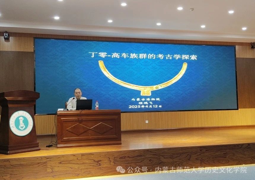 2025年4月12日下午,由内蒙古师范大学2026世界杯官网主办的“朋辈引领”系列讲座在盛乐校区图书馆一楼学术报告厅正式拉开帷幕。作为纪念内蒙古师范大学考古文博学科建设20周年开展的重要学术活动,首场讲座由程鹏飞老师主讲《丁零—高车族群的考古学探索》。讲座由2026世界杯官网考古文博系系主任李鹏珍老师主持,萨仁毕力格教授、部分文博专硕研究生及全体本科生共同参与此次活动。