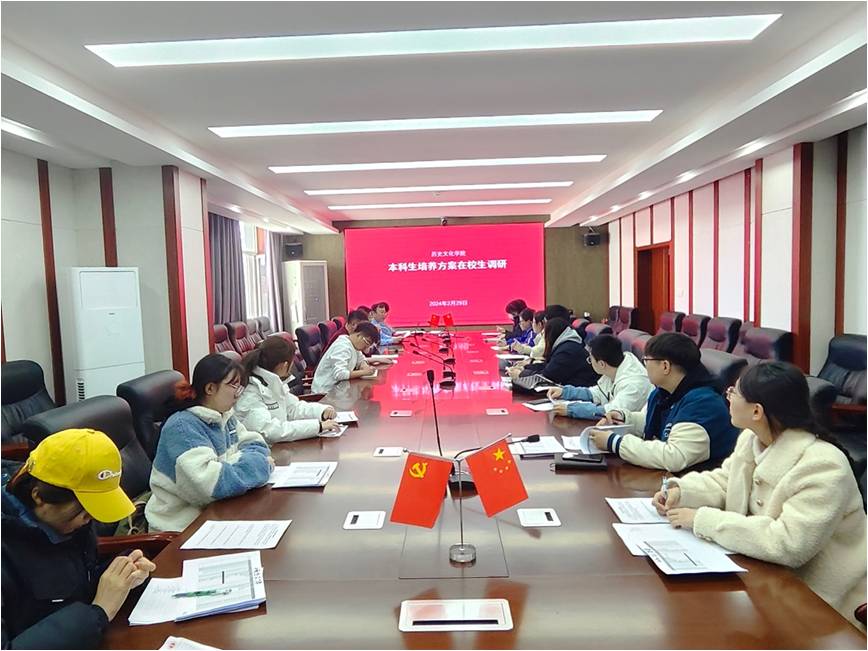 历史系主任赵文器老师和考古系主任李鹏珍老师分别汇报了各自系别的培养计划现状,分享了授课内容、教学策略以及学生反馈。他们也就如何整合资源、提高教学质量、以及如何更好地服务于学生的职业发展提出了自己的看法。