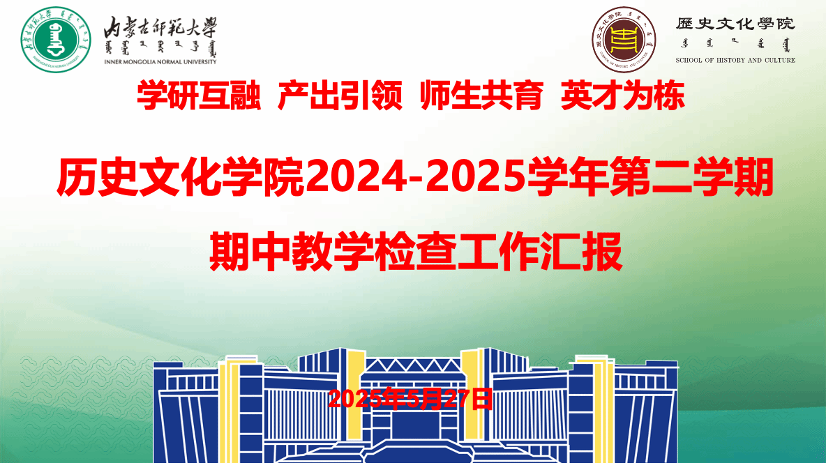 为全面贯彻新时代教育方针,落实立德树人根本任务,推动本科教育教学高质量发展,2025年5月27日上午9时,内蒙古师范大学期中教学检查第一组专家团队来我院开展期中教学检查工作。