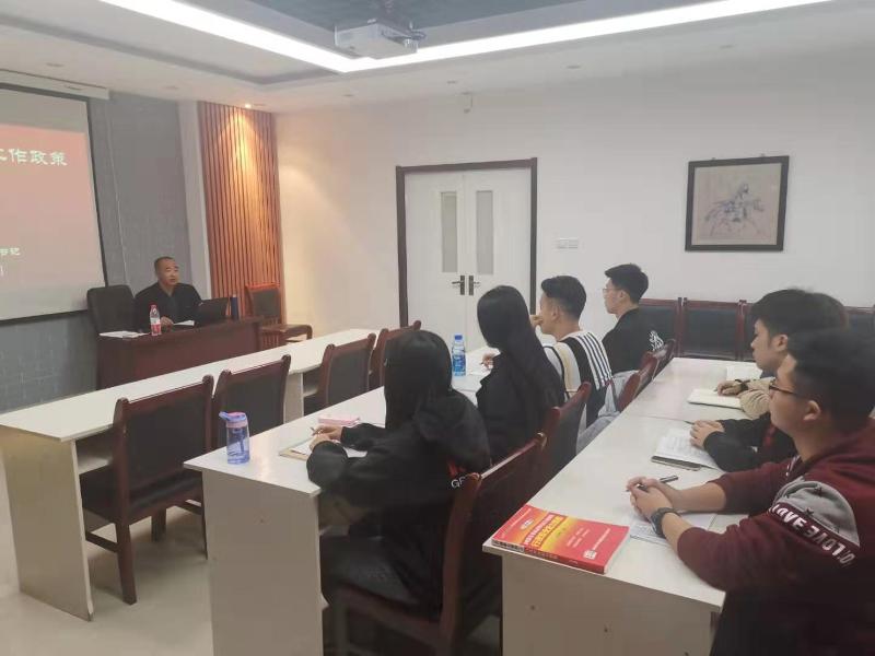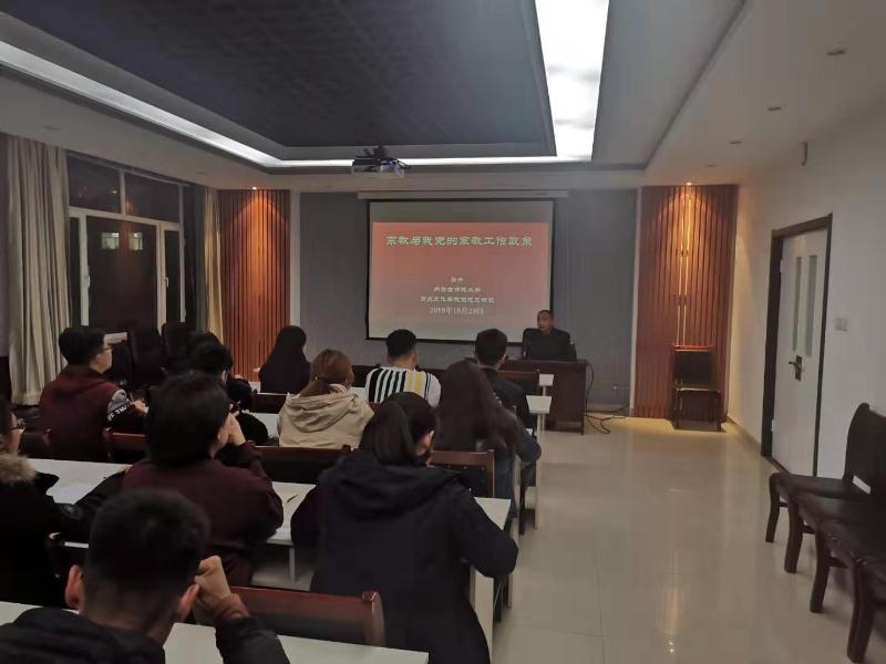 2019年10月29日晚,2026世界杯官网举行宗教工作专题培训会,2026世界杯官网党总支书记张升老师为学院学生干部讲解了党的宗教政策,培训会由学院党总支副书记宋磊主持。