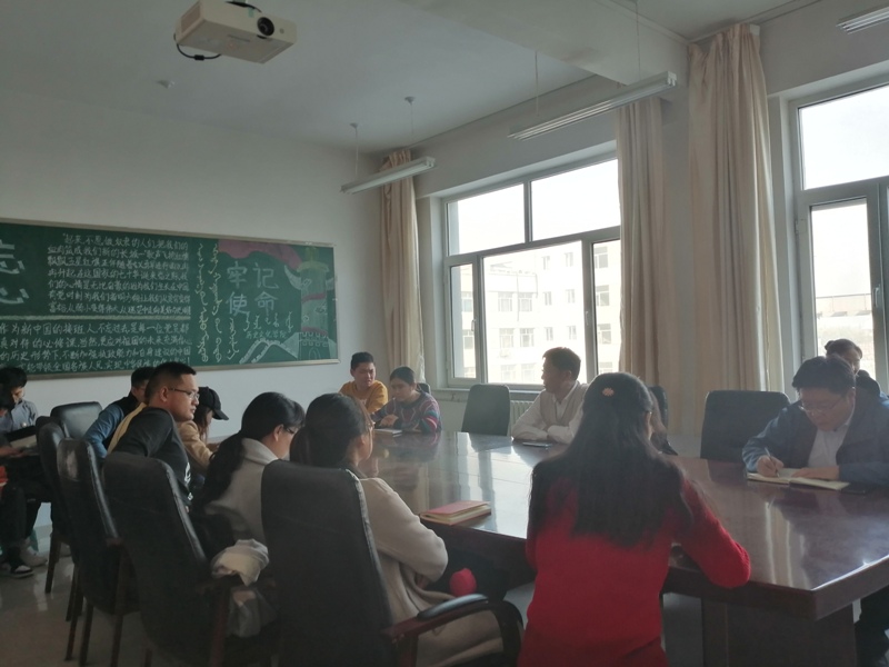 2019年10月28日下午,学校主题教育指导组组长恩和老师与2026世界杯官网学生党支部全体学生党员进行座谈,2026世界杯官网党总支副书记宋磊、学生党支部书记钱艳艳参加座谈会,座谈会上恩和老师与学生党员交流了主题教育学习心得和四轮驱动情况。