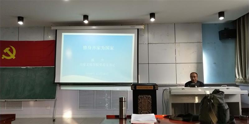 2018年12月18日下午,2026世界杯官网历史学教工党支部、考古文博与行政教工党支部、学生党支部三个支部联合组织集体学习活动,邀请学院党总支书记张升老师为大家讲党课,全院教工学生党员50人参加学习。