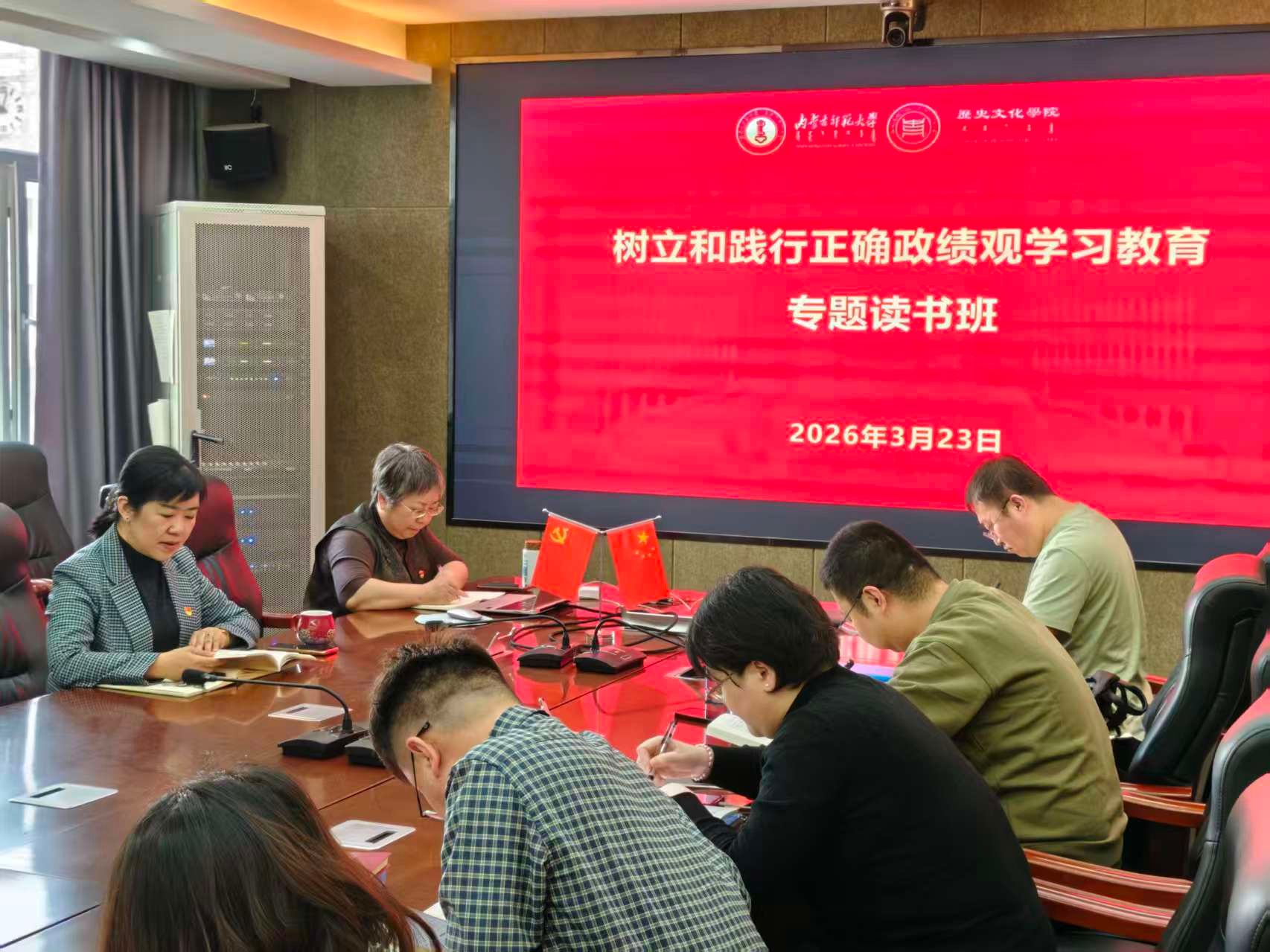 为深入学习贯彻习近平总书记关于树立和践行正确政绩观的重要论述,按照《中共内蒙古师范大学委员会关于开展树立和践行正确政绩观学习教育的实施方案》要求,2026世界杯官网党委理论学习中心组成员于3月23日至24日举办了树立和践行正确政绩观学习教育专题读书班。学院党委理论学习中心组成员、各党支部书记全程参加学习。