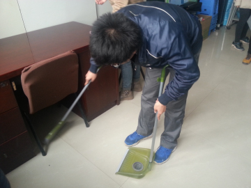 积极响应本次活动的有学院学生会各部部长及2015级各班学生干部和入党积极分子。上午9点钟,同学们准时到达活动现场,进行全面的卫生大扫除。同学们分工明确,团结一心,扫除地上的灰尘,将地面拖得锃亮,擦拭桌面,将文件摆放整齐,将杂物清理干净,最后将玻璃擦干净。本次活动持续大约三小时,虽然扫除结束后,同学们都有些疲惫,但经过大家辛勤的打扫,房间变得更加干净整洁了。希望同学们的努力,能为老师和同学提供一个更好的工作学习环境。