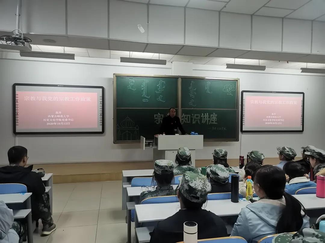 2020年10月12日晚,世界杯官网在行知教学楼105教室举行了《宗教知识》专题讲座,由学院党委书记张升老师主讲,2020级全体同学细致聆听讲座。