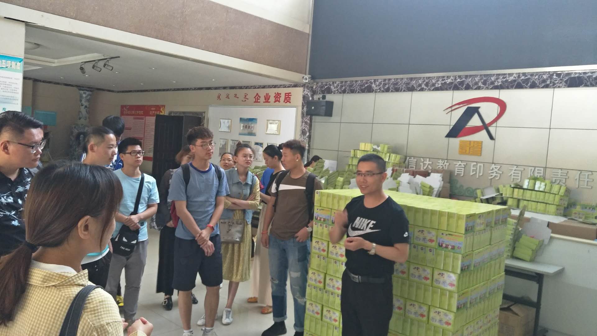 为强化对编辑出版学的认识,加强同学们对现代印刷技术及现代出版行业的了解,2018年5月25日上午九时许,在唐彩霞老师和哈斯格日勒老师的带领下,世界杯官网2016级文化产业管理班的同学们来到了内蒙古爱信达教育印务有限责任公司进行了参观学习。