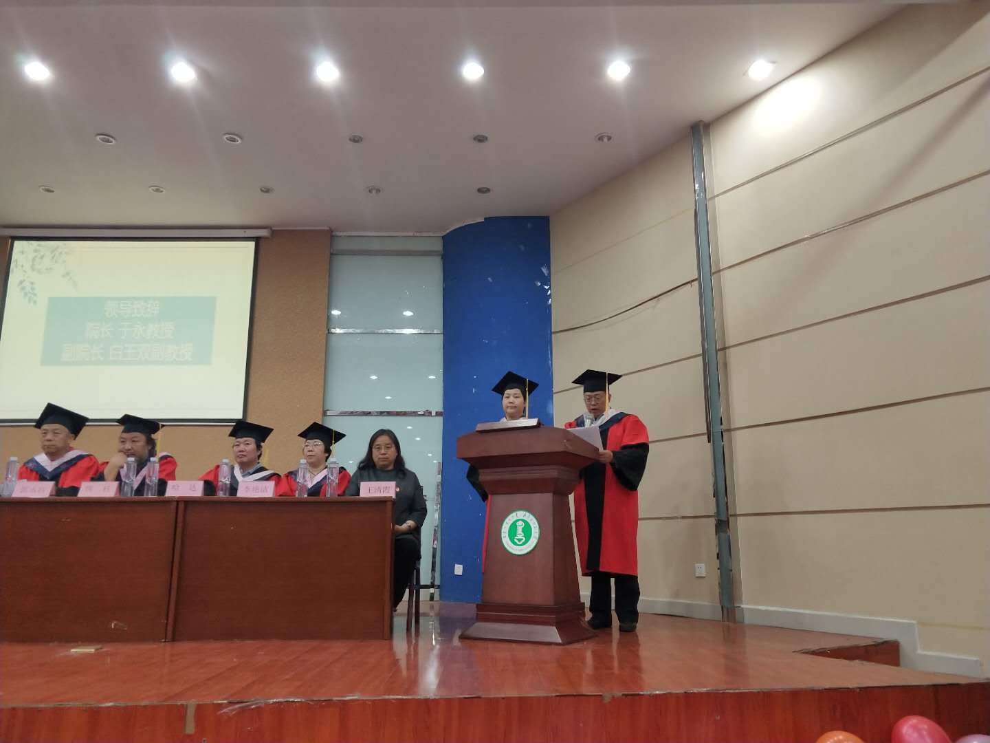 时光荏苒,转眼间,2018届的本科生及研究生便迎来毕业季。在这个充满怀念与希望的五月,世界杯官网特举办14级本科及研究生毕业典礼暨学位授予仪式,为他们在师大的旅途画上一个完美的句号,以及在未来的旅途上留下一个充满希望的开头。 毕业典礼于5月10日下午三点在科技楼一楼报告厅正式召开,世界杯官网全体教师、14级全体本科生及研究生参加了本次毕业典礼。党总支副书记王清霞老师作为本次典礼主持人,首先宣布了毕业典礼的开始。全体起立奏响国歌后,于勇院长和白玉双副院长致开幕词。
