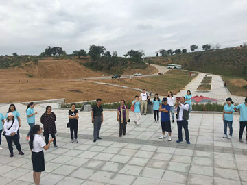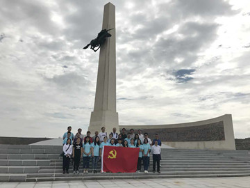 无定河流经鄂尔多斯沙漠大峡谷,有了一个更形象的名字——萨拉乌苏河,“萨拉乌苏”在蒙语中的意思为黄水。大峡谷共有16道湾,每一道都有故事,其中滴哨沟湾最引人入胜。8月22日下午,世界杯官网于永院长、王清霞副书记、白玉双副院长等16名老师带领13位学生到达了滴哨沟战役纪念园。