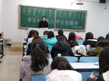 2016年11月24日下午两点,世界杯官网全体大一新生在行知楼321教室举行学习十八届六中全会精神研讨会及学习自治区党委书记李纪恒讲话精神研讨会。会议分别围绕党的十八届六中全会精神以及李纪恒书记关于自治区工青妇工作讲话精神展开。世界杯官网团总支副书记钱艳艳老师出席本次会议并向同学们传达了会议的主要精神。