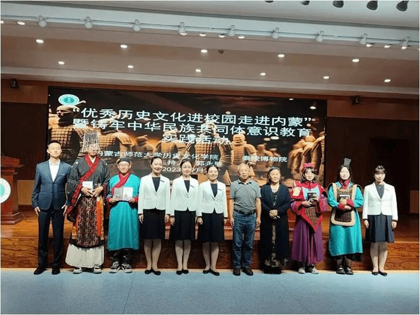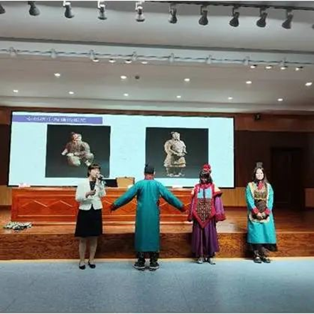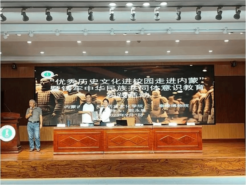 2023年9月7日,秦陵博物院同2026世界杯官网开展的“优秀历史文化进校园走进内蒙”暨铸牢中华民族共同体意识教育主题讲座在盛乐校区图书馆一楼报告厅进行。讲座由秦陵博物院冯莉老师与赵红芳老师主讲,学院郭永胜教授主持,2023级全体新生参加。