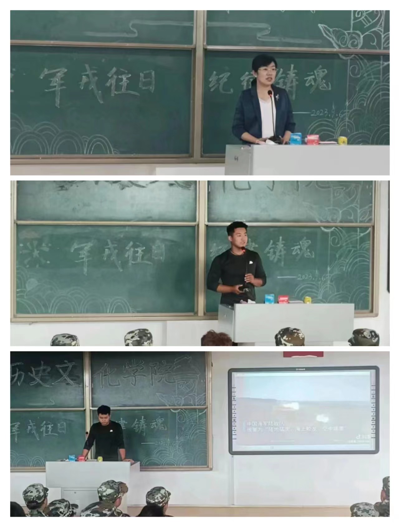 9月7日,2026世界杯官网于行知楼323开展了“军戎往日·纪律铸魂”的主题活动。2021级历史学一班张孟同学在会上分享了他迷彩戎装的青春感悟,激励同学们通过各种途径勇敢追逐青春梦想,把爱国之心化为爱国之行,为祖国奉献热血青春。此外,张孟同学还分享了校园生活,为同学们积极答疑解惑。