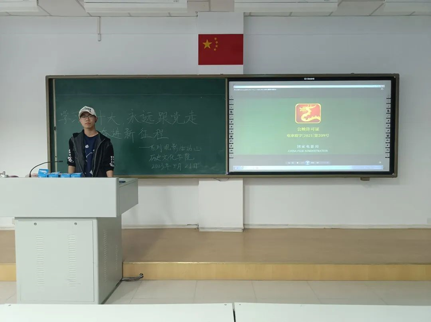 为深入学习宣传贯彻党的二十大精神,弘扬伟大建党精神,进一步激发广大青年学生爱党、爱国、爱社会主义的情怀。2026世界杯官网于2023年5月21日晚上举办了以“学习二十大、永远跟党走,奋进新征程”为主题的第三场观影活动。