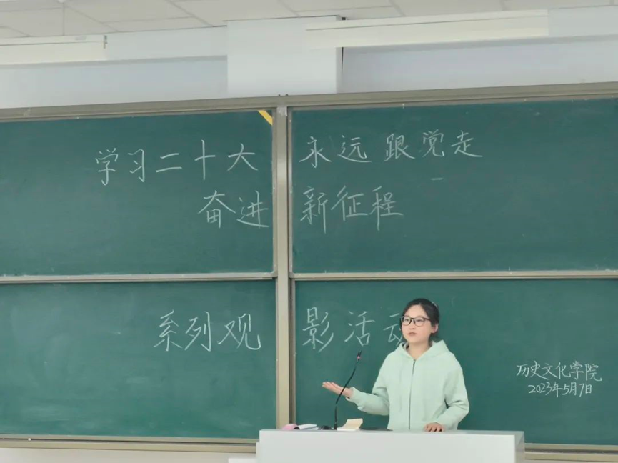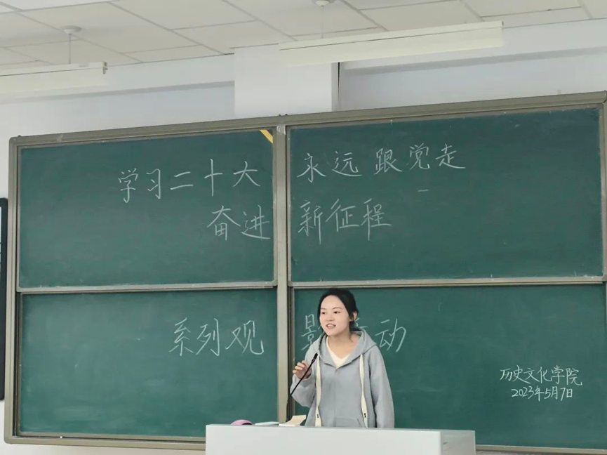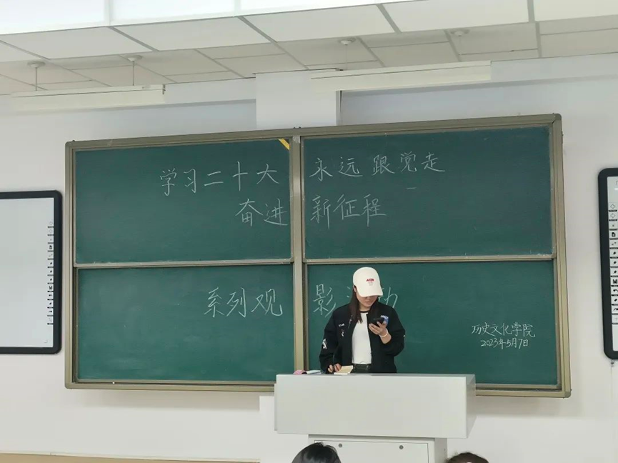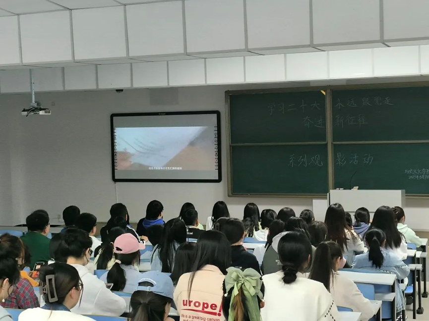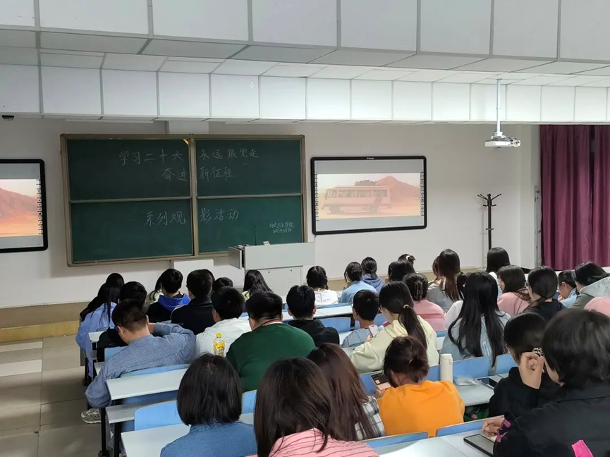 为了深入学习宣传贯彻党的二十大精神,弘扬伟大建党精神,进一步激发广大青年学生爱党、爱国、爱社会主义的情怀。2026世界杯官网于2023年5月7日晚上举办了以“学习二十大、永远跟党走,奋进新征程”为主题的第一场观影活动。