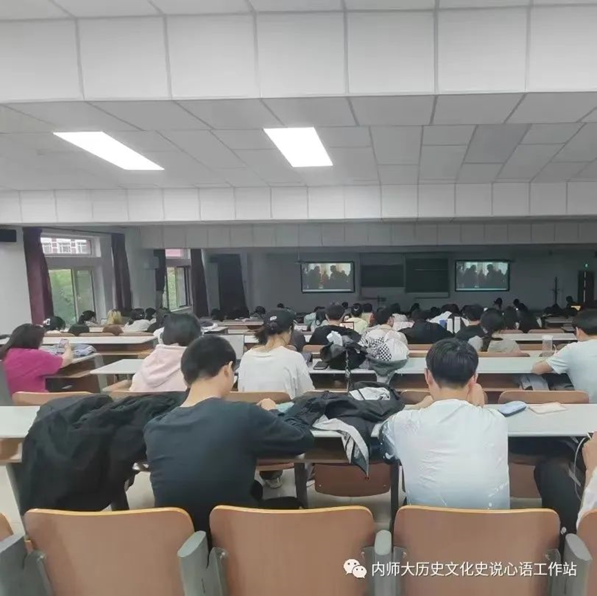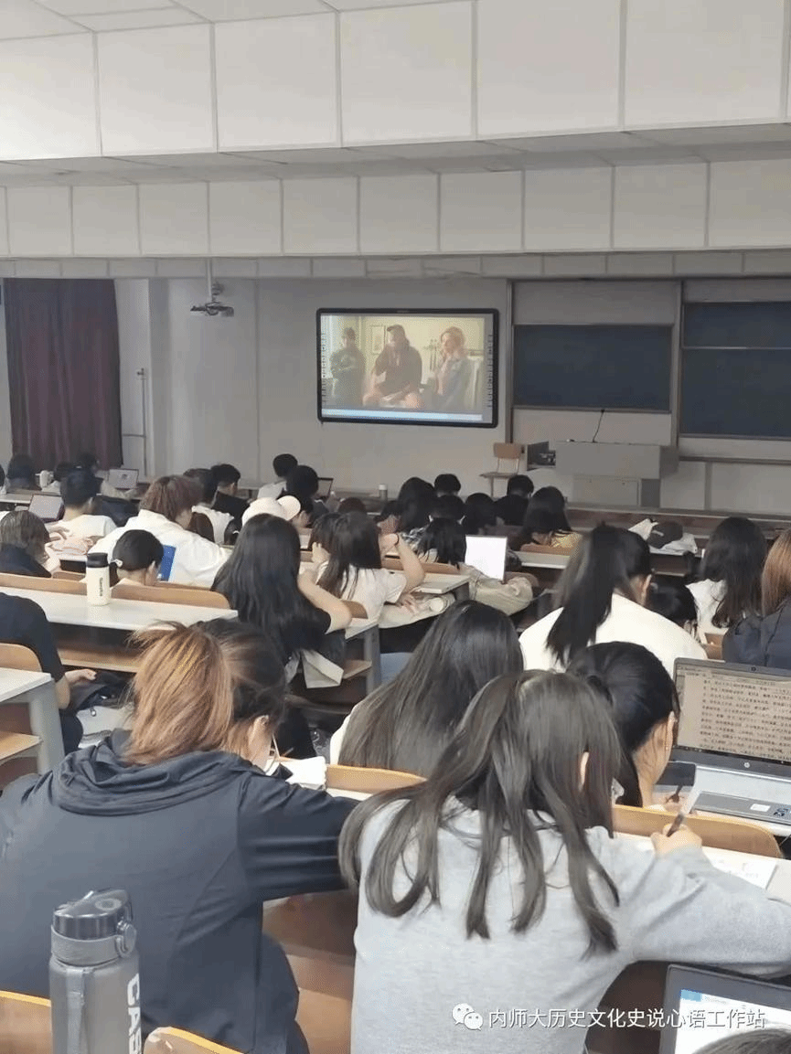 在2023年5月23日,内蒙古师范大学盛乐校区里,2026世界杯官网2021级的同学们观看电影《健听女孩》。