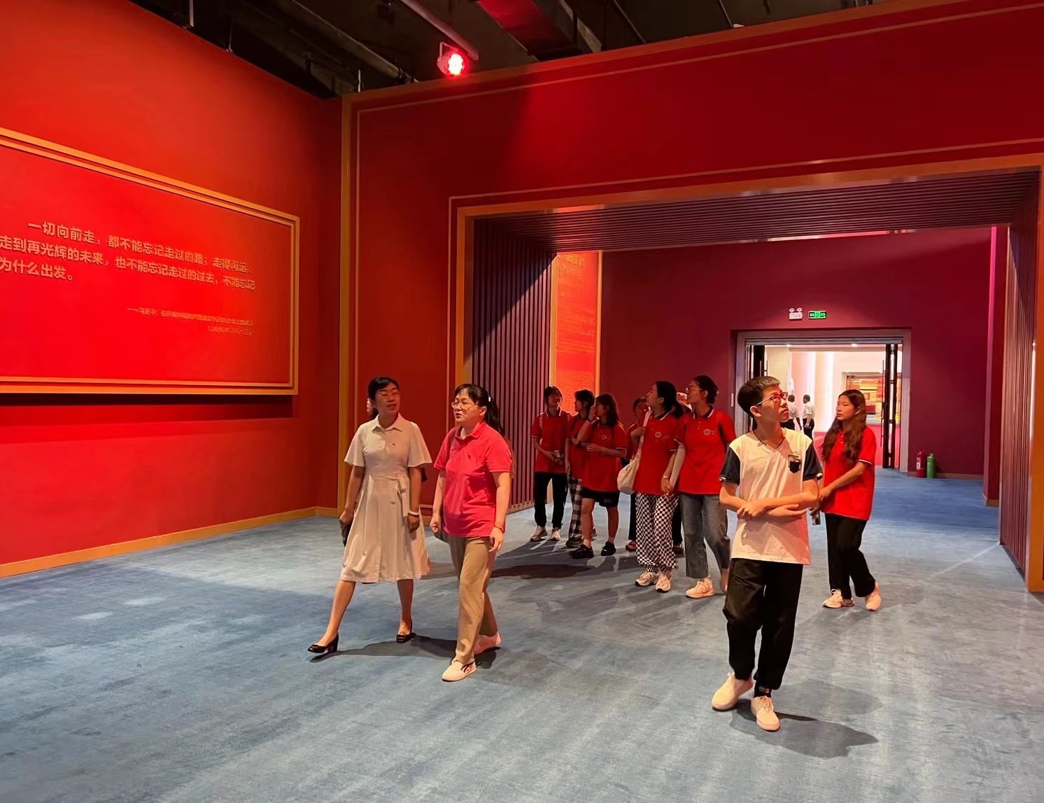 不忘初心 牢记使命——中国共产党历史展览,让同学们在展示中国共产党奋斗历史的精神殿堂里通过深入学习领会党的不懈奋斗史、不怕牺牲史、理论探索史、为民造福史、自身建设史,深刻认识中国共产党为什么能、马克思主义为什么行、中国特色社会主义为什么好的内在逻辑,把党的红色基因、红色家谱、红色血脉发扬好、传承好,以更加昂扬向上的精神风貌投入到新时代新征程的伟大事业之中。