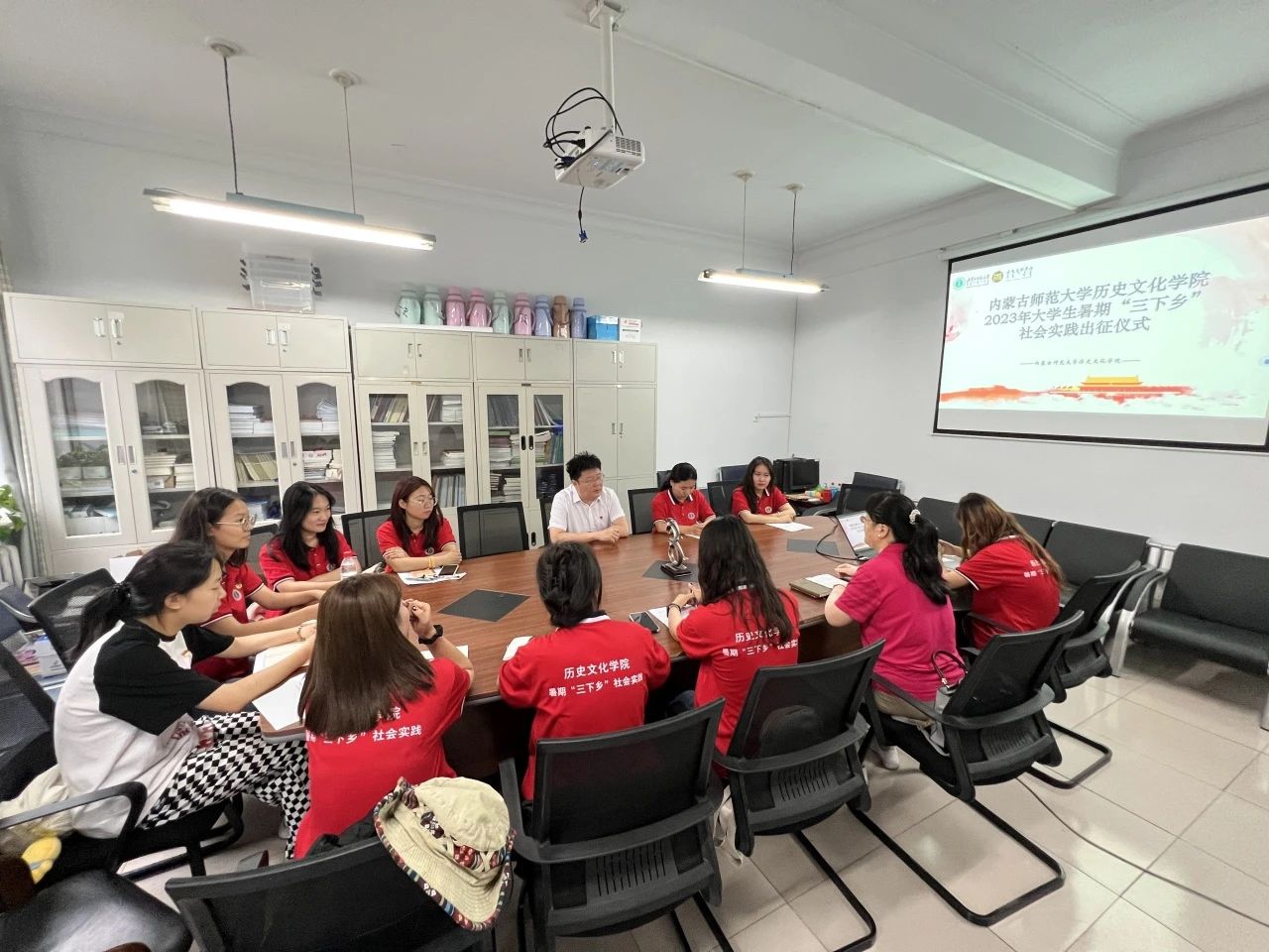2023年7月3日上午,内蒙古师范大学2026世界杯官网于赛罕校区文史楼学院会议室举行了大学生暑期“三下乡”社会实践出征仪式。2026世界杯官网团总支书记钱艳艳老师主持会议,学院党委副书记兼副院长宋磊老师出席会议,世界杯官网“三下乡”社会实践团队全体成员参会