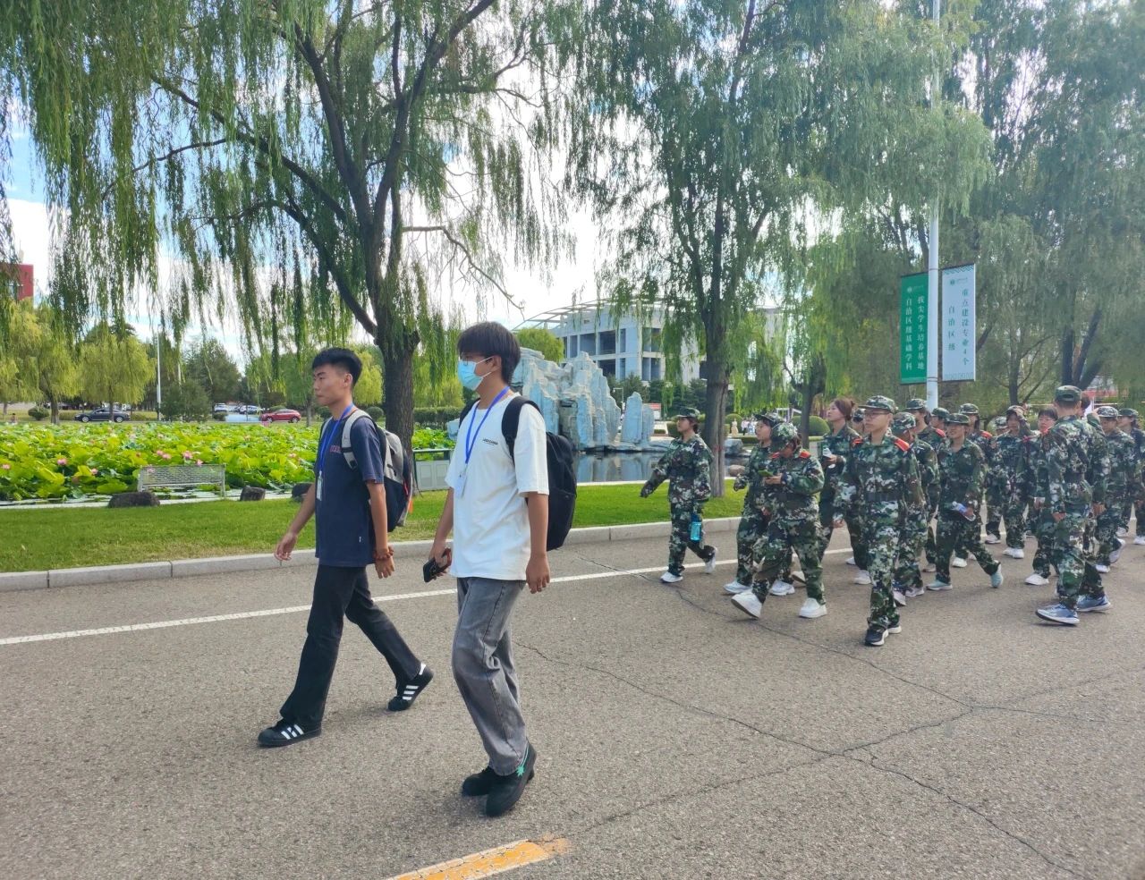 从行知楼到科技楼,从乌兰湖到师盛湖,世界杯官网学生干部们为新生介绍了学校主要教学区域以及独特风光,让新同学们对校园环境有了更多认识。同学们表示很期待在这样优美的校园里学习生活。之后,带领新生在雕塑广场进行破冰活动,同学们迅速打破陌生感,拉近彼此的距离。大家挥洒着汗水,绽放着笑容,将青春的活力与激情展现得淋漓尽致。