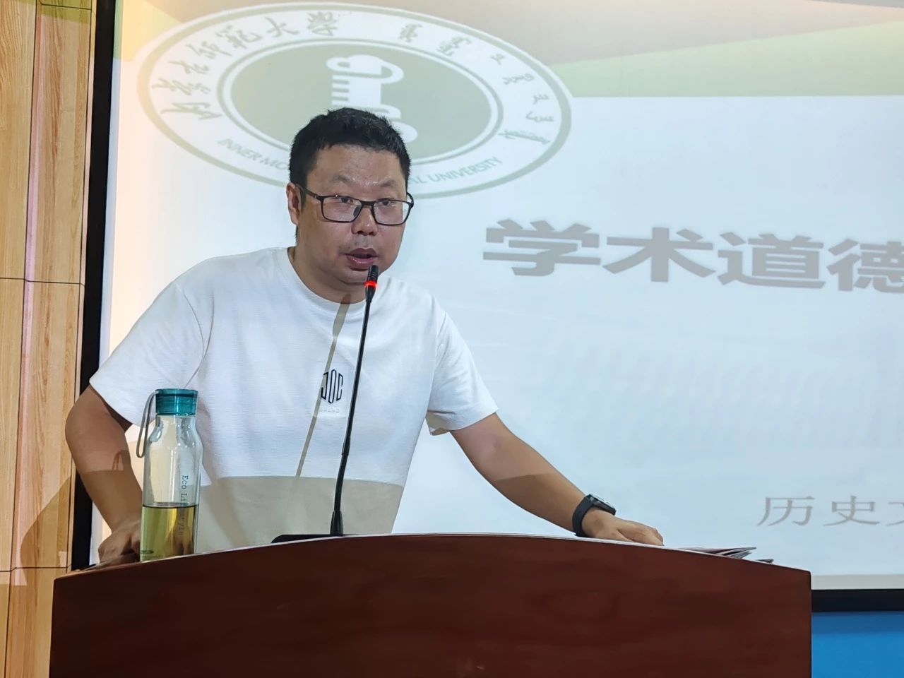 9 月 19 日下午,学院历史系主任赵文器老师开展了学术道德与学术规范教育。赵文器老师表示,学术道德与规范强调诚信与严谨,分为理论、制度、行为三个层面,旨在防止舞弊伪造。教育部对学位舞弊严肃处理,要求遵循基本规范。历史研究成果应择优刊发,论文撰写需符合标准。抄袭剽窃、篡改伪造等均属学术不端行为,需引起警惕。为此,赵文器老师还为同学们推荐了《学术训练与规范》及《中国古代史研究入门》等书目。