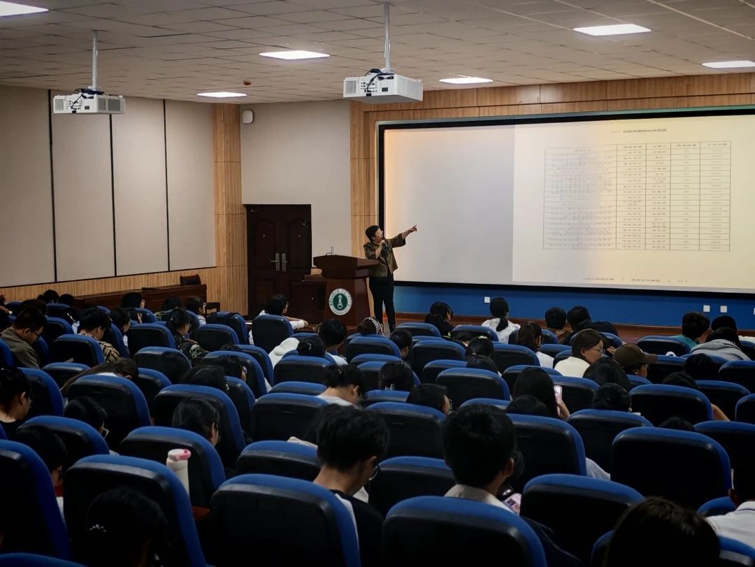 随后,学院教学秘书朝克毕力格老师深入解读了学籍管理(包括转专业、退学、休学、降级政策)以及学业成绩监测与处理机制。朝克毕力格老师针对各个专业,详细阐述了专业培养方案与学分构成。同时,朝克老师就选课流程进行了详细讲解与指导,并强调了注意事项,助力同学们合理规划学业,优化课程选择,确保学习高效顺畅。