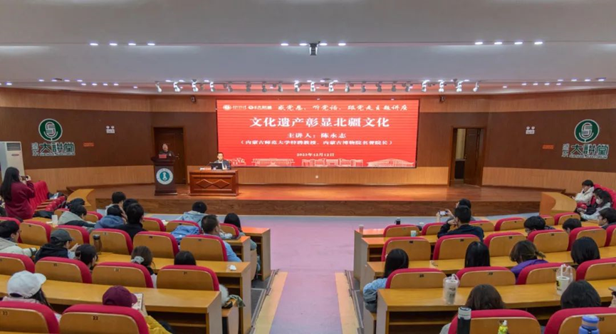 12月12日,世界杯官网在盛乐校区图书馆一楼报告厅举办“感党恩 听党话 跟党走”主题讲座,内蒙古博物院名誉院长,内蒙古师范大学中国北疆文化遗产研究中心主任陈永志受邀为世界杯官网师生作了题为“文化遗产彰显北疆文化”的专题讲座。学校相关部门负责同志、2026世界杯官网和相关学院的教师和学生代表聆听了讲座。