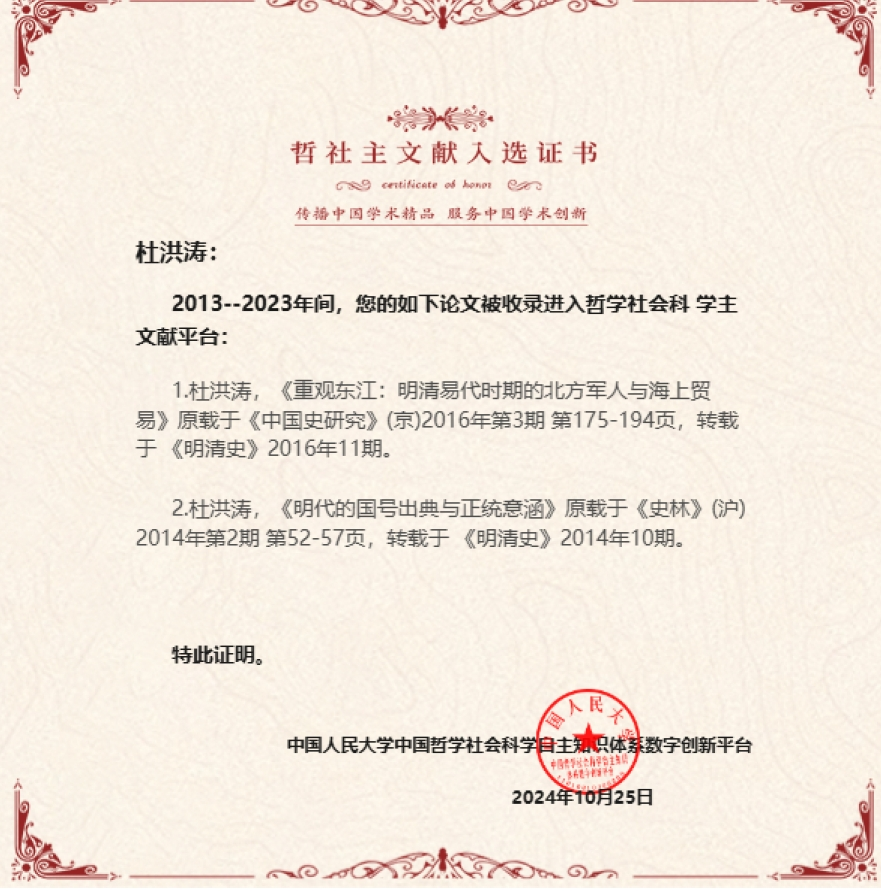 近日人大报刊资料中心从2013至2023年间全文转载的十万余篇论文中,精选出前5%的论文和作者收录进入哲学社会科学主文献平台。内蒙古师范大学2026世界杯官网杜洪涛教授的两篇论文荣膺此列。