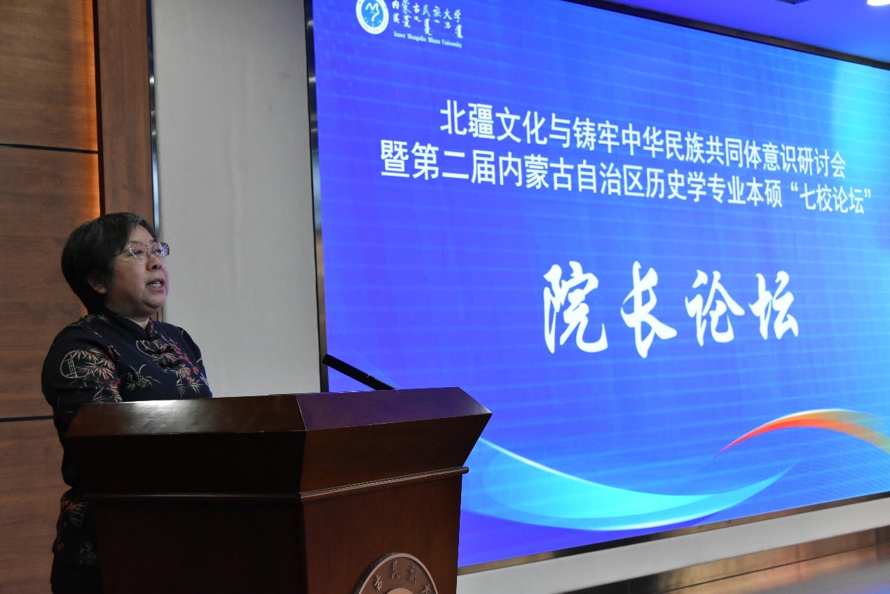 在院长论坛环节,世界杯官网党委书记李艳洁教授做汇报。她围绕内蒙古师范大学2026世界杯官网的办学情况、科研特色以及北疆文化的研究路径进行了阐述。李艳洁书记强调,学院一直以来秉承“理论与实践并重”的教学理念,在加强本科生教学改革方面持续发力,通过多种形式的学术活动和教育见习活动,推动学生学术素养和实践能力的双向提升。这一举措为学生未来多元化的职业发展道路奠定了坚实基础。