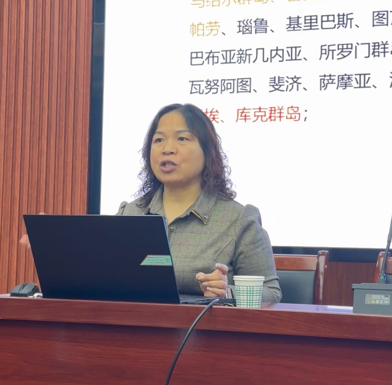 讲座伊始,吕桂霞教授从基础研究入手,深入剖析了太平洋岛国的基本概况及特点。她依据历史、地理及政治等多维度标准,界定了太平洋国家的范畴,从狭义的18国到广义的44国及海外领土的动态变化。吕教授系统呈现了岛国多元并存的政治生态,详述了以发展中国家为主导的高度依赖传统农业、渔业及旅游业的经济特点,并解读了三大文化圈、宗教文化与部落酋长文化相互交融的独特景象,为后续探讨双边关系打下坚实基础。
